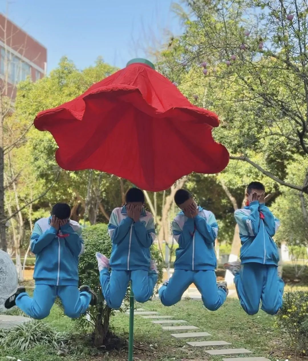 无需触碰、无需按键,只需一声呼唤、一曲轻哼,甚至一个俏皮的口哨,这朵神奇的红色大花便会绽放。课间15分钟,约上好友对着它喊出烦恼,看压力随花瓣摇曳消散;阳光午后,为它唱首最爱的歌,让笑声与花朵一同盛放。