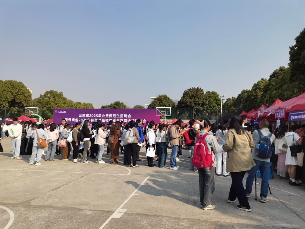 3月13日,云南省2025年公费师范生招聘会暨云南省2025届师范类高校毕业生双向选择洽谈会在伟德国际1946bv官网呈贡校区西区篮球场盛大举行。这场招聘会吸引了来自云南、广西、广东、北京等12个省(市、自治区)的533家用人单位,2万余名毕业生踊跃入场。