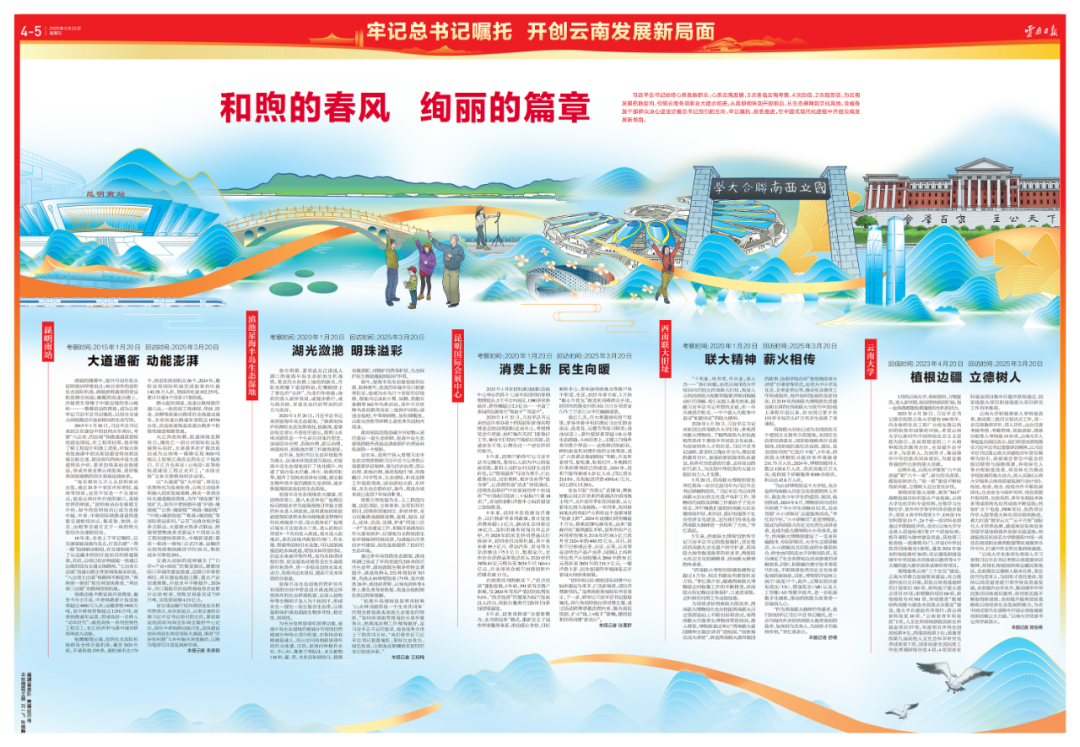 习近平总书记始终心系各族群众,心系云南发展,3次亲临云南考察、4次回信、2次致贺信,为云南发展把脉定向,引领云南各项事业大踏步前进。从高原明珠到开放前沿,从生态屏障到文化高地,全省各族干部群众决心坚定沿着总书记指引的方向,牢记嘱托,感恩奋进,在中国式现代化进程中开创云南发展新局面。