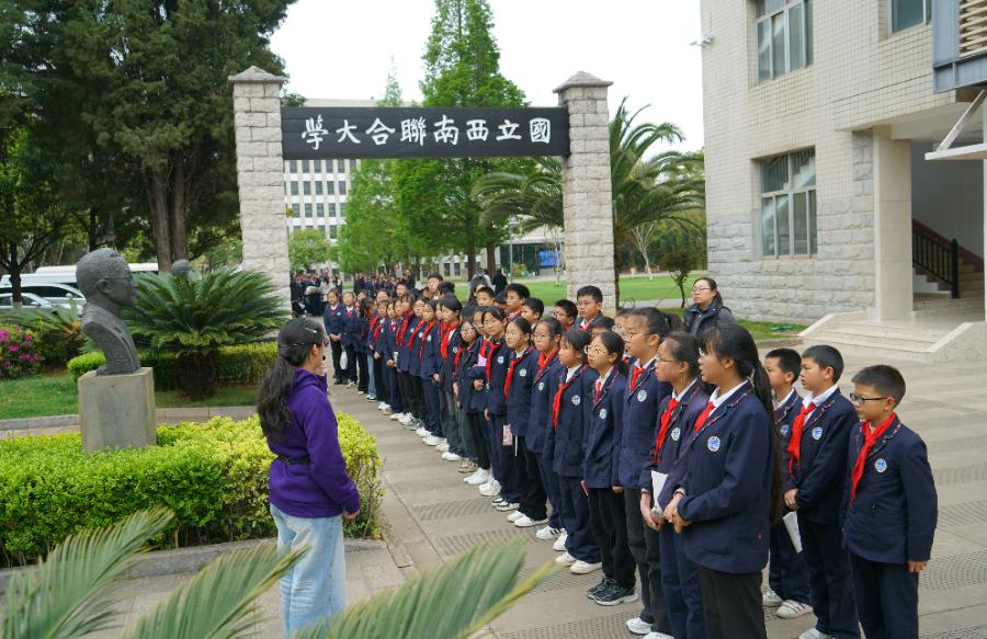 上午9时30分,苍松翠柏掩映下的四烈士墓肃穆静谧。全体人员面向烈士墓肃立默哀,向烈士行鞠躬礼。伴随《献花曲》,参加活动的人员依次缓步上前,瞻仰烈士墓并向烈士敬献鲜花。悼念仪式结束后,部分党员在烈士墓前重温入党誓词。在博物馆讲解员带领下,大家有序参观西南联大旧址及博物馆,通过珍贵文物与影像资料,感悟战火中西南联大师生“教育救国、文化抗战”的崇高理想。