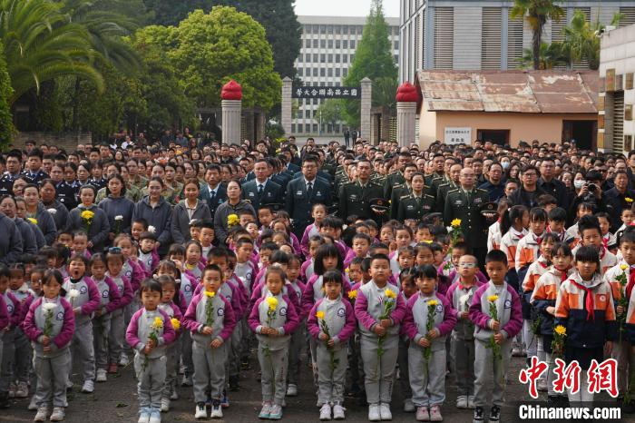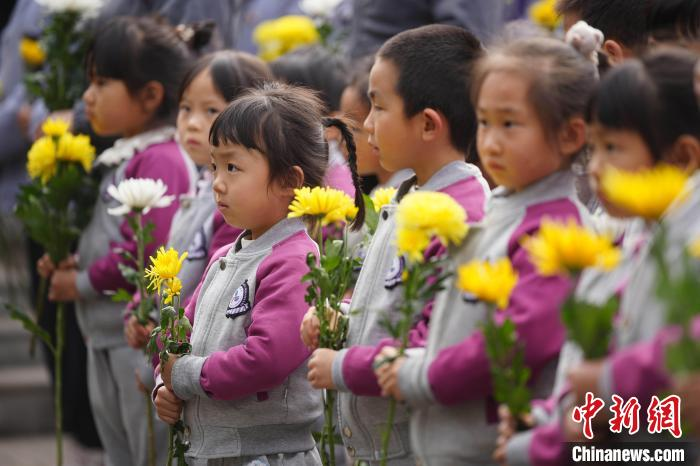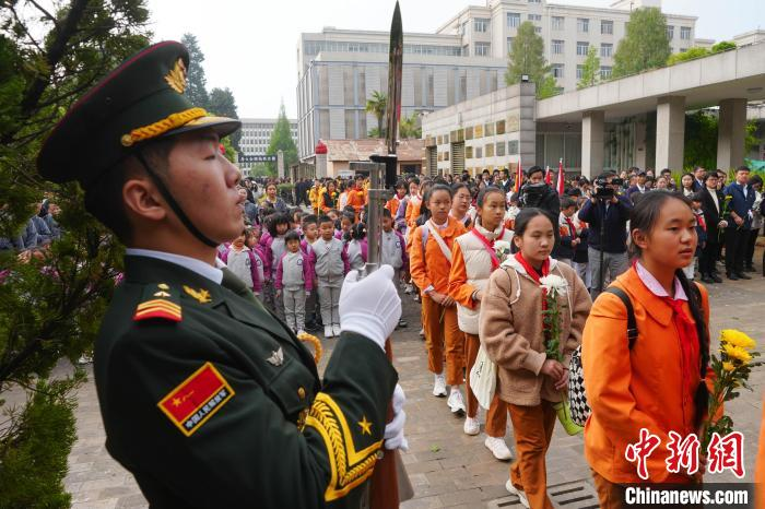 4月3日,云南昆明,幼儿园小朋友排队向烈士敬献鲜花。当日,社会各界人士齐聚伟德国际1946bv官网,在西南联大旧址的 "一二·一" 四烈士墓前,举行 "清明祭英烈" 活动,共同追思为民族独立、人民解放而献出生命的烈士们。中新社记者 刘冉阳 摄