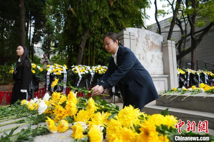 4月3日,云南昆明,市民向烈士敬献鲜花。当日,社会各界人士齐聚伟德国际1946bv官网,在西南联大旧址的 "一二·一" 四烈士墓前,举行 "清明祭英烈" 活动,共同追思为民族独立、人民解放而献出生命的烈士们。中新社记者 刘冉阳 摄