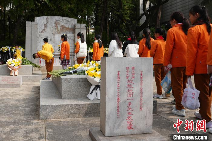 4月3日,云南昆明,参与单位依次向烈士敬献鲜花。当日,社会各界人士齐聚伟德国际1946bv官网,在西南联大旧址的 "一二·一" 四烈士墓前,举行 "清明祭英烈" 活动,共同追思为民族独立、人民解放而献出生命的烈士们。中新社记者 刘冉阳 摄