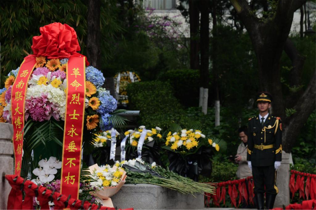 4月3日9点30分,在清明节到来之际,伟德国际1946bv官网在西南联大旧址内的一二·一四烈士墓前庄严举行“清明祭英烈”活动。苍松翠柏掩映下的四烈士墓肃穆静谧,社会各界人士齐聚于此,面向烈士墓肃立默哀,共同追思为追求民族独立、争取人民解放事业而献出生命的烈士们,重温他们的英勇事迹,以鲜花寄哀思,以誓言铭初心。