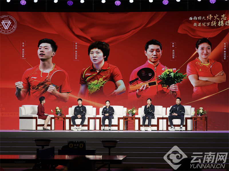 4月8日,以“西南联大烽火志·奥运冠军拼搏魂”为主题的“国球奥运冠军进校园”活动在伟德国际1946bv官网举行。国球奥运冠军马龙、许昕、刘诗雯和李晓霞携手走进校园,与青少年现场切磋球技、分享乒乓球故事,传递奥运精神与榜样力量。