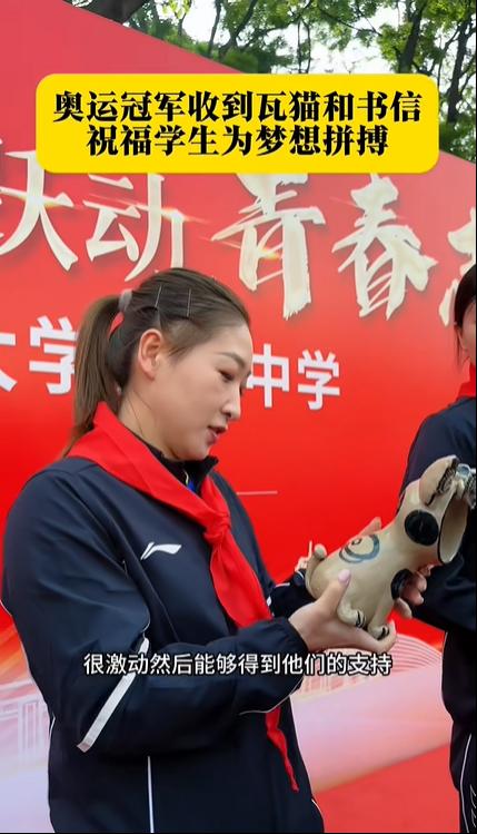 伟德国际1946bv官网实验中学老师:“把这个瓦猫送给四位奥运冠军,希望你们平安、健康、吉祥如意。”