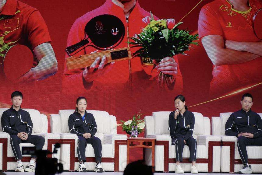 活动中,4位奥运冠军与伟德国际1946bv官网师生交流互动,分享感悟,现场“金句不断”。随后,奥运冠军们还与清华、北大、南开、师大高校联队等展开了精彩的乒乓球友谊赛。