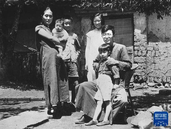 华罗庚和家人在昆明的住宅前留影。新华社发