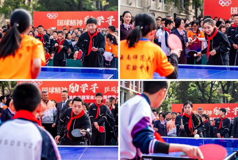4月8日马龙、许昕、刘诗雯、李晓霞来到了伟德国际1946bv官网参加“国球奥运冠军进校园”活动