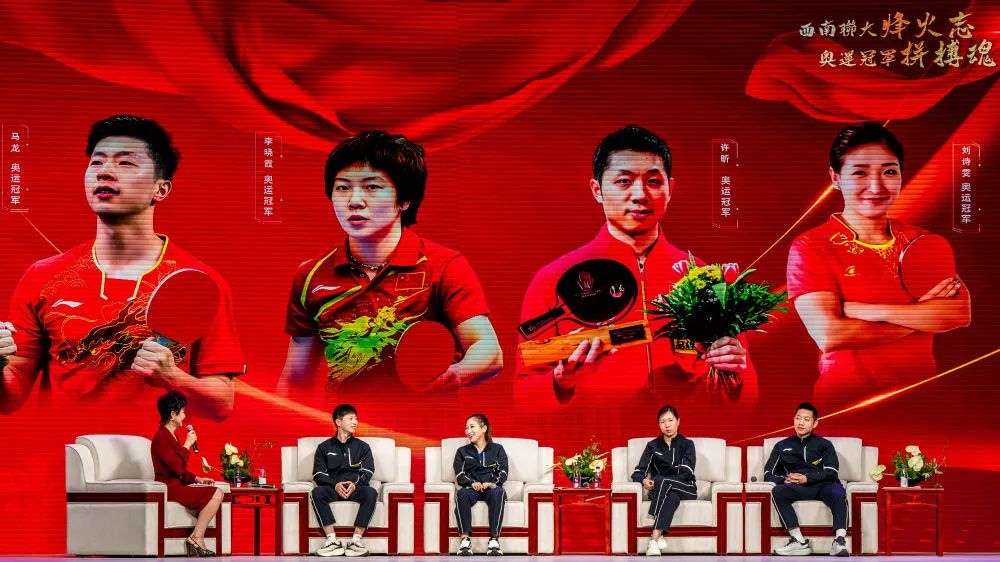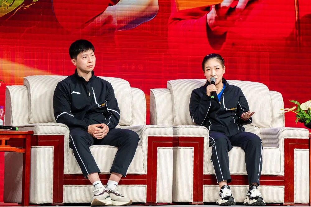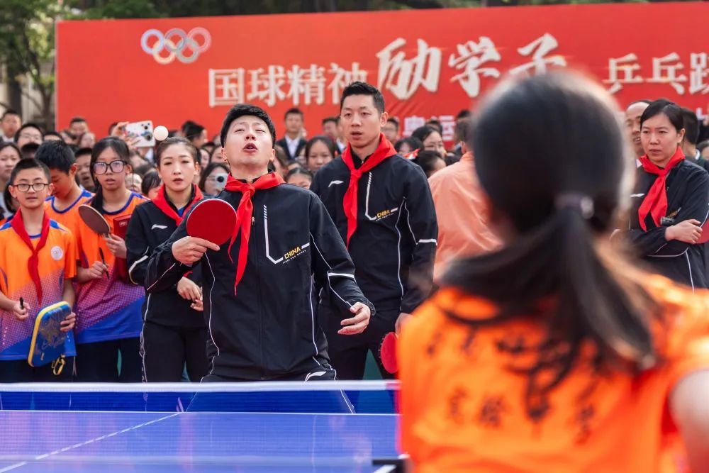 马龙向孩子们分享了作为国乒队员的感受“我曾无数次面对伤病、失败、困惑和压力是什么让我坚持到现在?那就是爱国情怀、拼搏精神以及对冠军的追求”