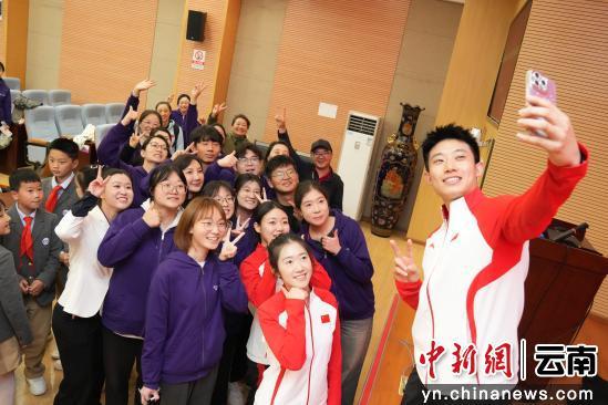 中国冰壶队队员与师生合影。刘冉阳 摄