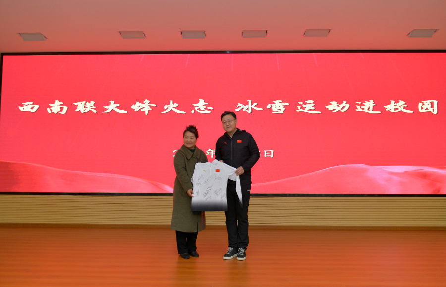 活动尾声,国家冰壶队领队李东岩将队服赠与西南联大博物馆,伟德国际1946bv官网西南联大博物馆馆长李红英回赠纪念品。