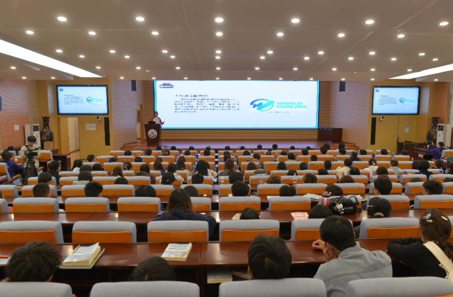 在随后的专题讲座中,国家冰壶队优秀青年运动员代表张佳奇、费学清、韩雨3位队员系统介绍了国家冰壶队的建队历程和冰壶运动的基本知识,并通过精彩的影像资料展示了冰壶运动的魅力。在互动环节中,学生代表与冰壶健儿们近距离交流,热烈的问答互动激发了大家对冰壶运动的浓厚兴趣。队员们还分享了各自拼搏奋进的成长故事。
