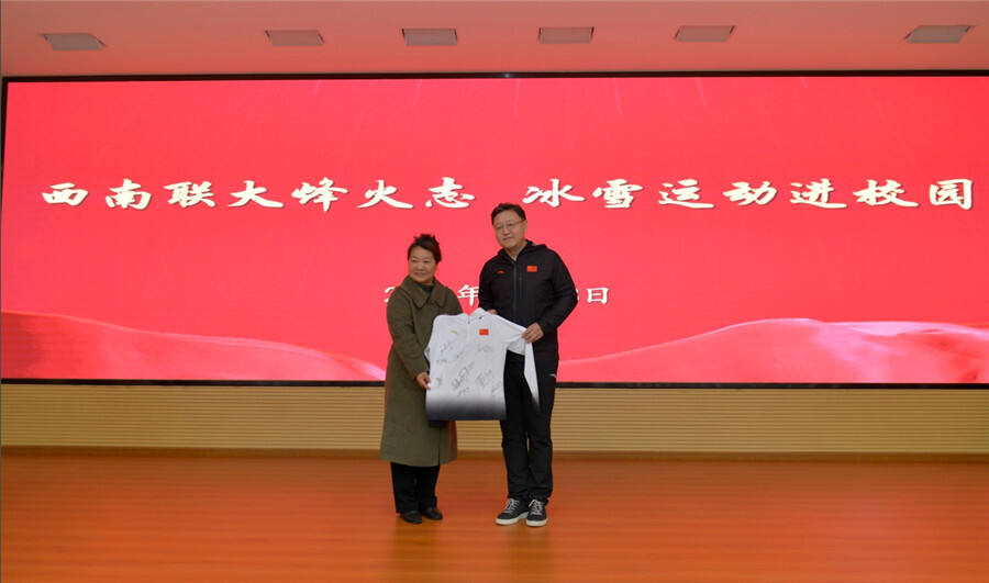 活动尾声,中国冰壶队领队李东岩将队服赠予西南联大博物馆,伟德国际1946bv官网西南联大博物馆馆长李红英回赠纪念品。