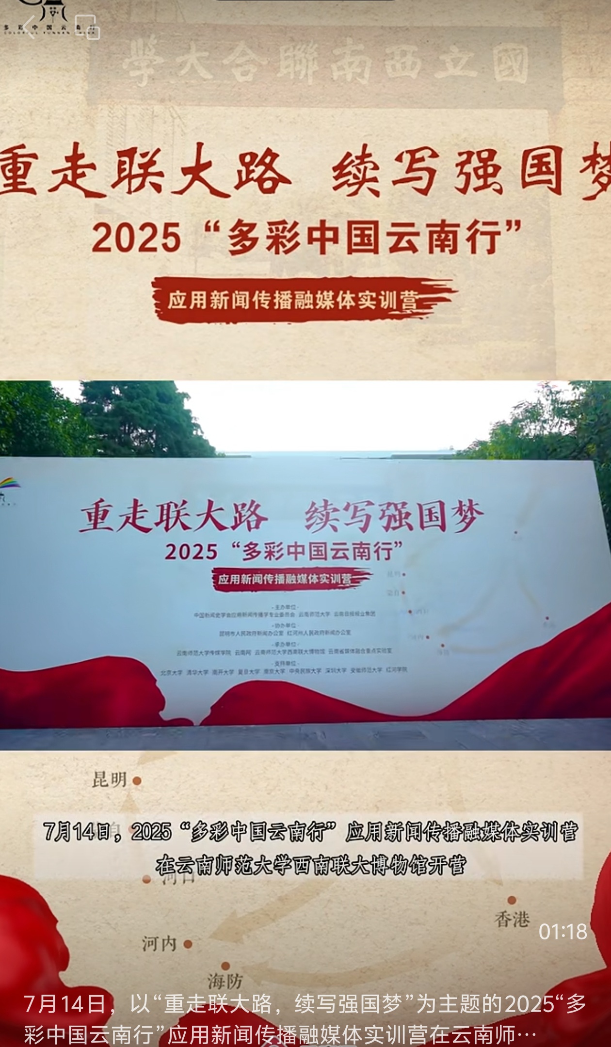 7月14日,以“重走联大路,续写强国梦”为主题的2025“多彩中国云南行”应用新闻传播融媒体实训营在伟德国际1946bv官网西南联大博物馆开营。来自南开大学、复旦大学、中央民族大学、南京大学、深圳大学、安徽师范大学、伟德国际1946bv官网、红河学院的新闻传播专业100余名师生及主流媒体记者齐聚云南,重返西南联大师生脚步丈量过的土地,以青年视角书写和传播好云南故事。