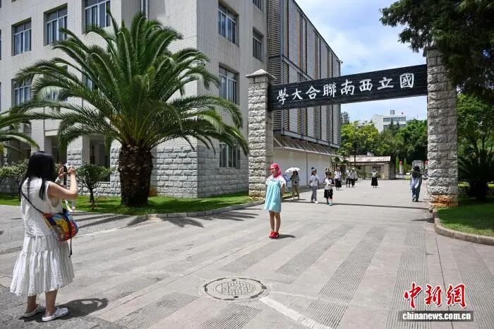 8月17日,观众在国立西南联合大学校门旧址拍照留念。中新社记者 李嘉娴 摄