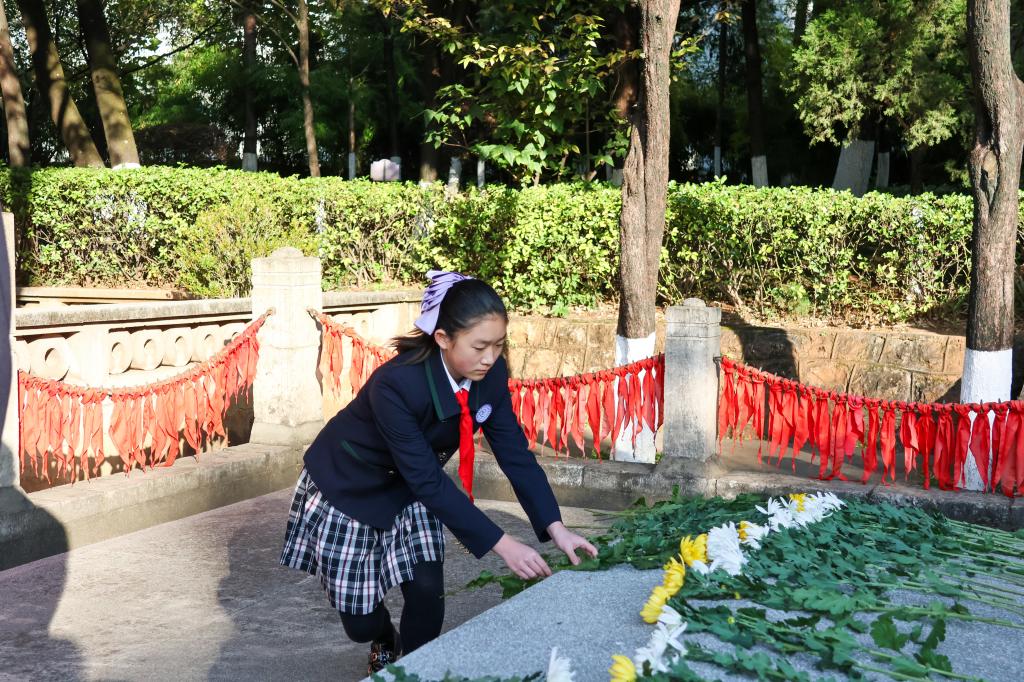 苍松翠柏掩映下的“一二·一”运动四烈士墓肃穆静谧,包括烈士家属在内,全体人员肃立向烈士默哀,行鞠躬礼,并向“一二·一”运动四烈士墓、闻一多先生衣冠冢、李公朴先生衣冠冢及革命烈士纪念碑敬献鲜花,缅怀在“一二·一”运动中英勇牺牲的于再、潘琰、李鲁连、张华昌4位烈士,以及为民族独立、人民解放光荣献身的闻一多、李公朴等革命先烈。