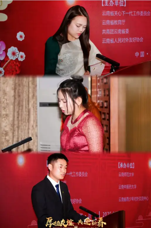 留学生代表的发言真挚动人。伟德国际1946bv官网缅甸学生周羚艳分享了家族与中国的不解之缘,从美食、科技、生态等维度讲述“既传统又现代的中国”,立志成为两国友好的桥梁;云南中医药大学老挝留学生李新琪结合中医学习经历,讲述不同文明中“人与自然和谐共生”的共同智慧,表达了传播两国文化的决心;云南中医药大学中国青年学生李伟峰结合中医药学习实践,分享与周边国家青年交流互鉴的故事。现场凝聚起青春力量、共促发展的共识。