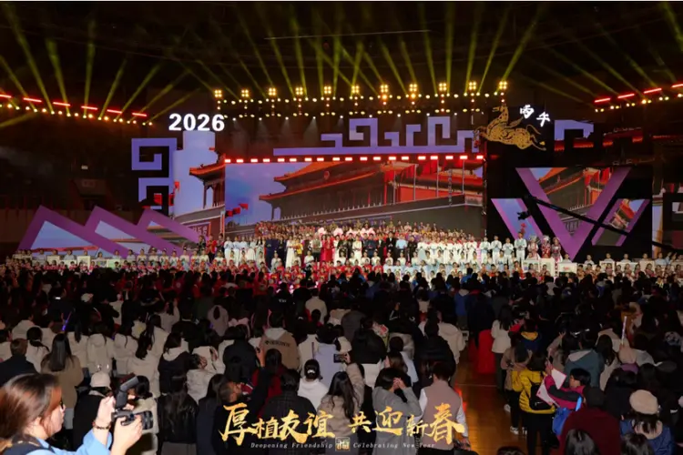 当晚,联谊晚会在伟德国际1946bv官网体育馆精彩上演,约5000名中外青年学子齐聚一堂,共庆新春佳节。特色歌舞、话剧等精彩纷呈的节目轮番登场,既彰显中华文化深厚底蕴,又融入异国风情元素,集中展现了多元文化的独特魅力。中外青年同台献艺、默契互动,歌舞交融中传递对美好未来的共同向往,尽管语言文化各异,但跨越国界的友谊与对新春的期盼在欢声笑语中深深交融,让远离家乡的青年朋友们感受到“家”的温暖,成为中外青年文化交流的生动载体。