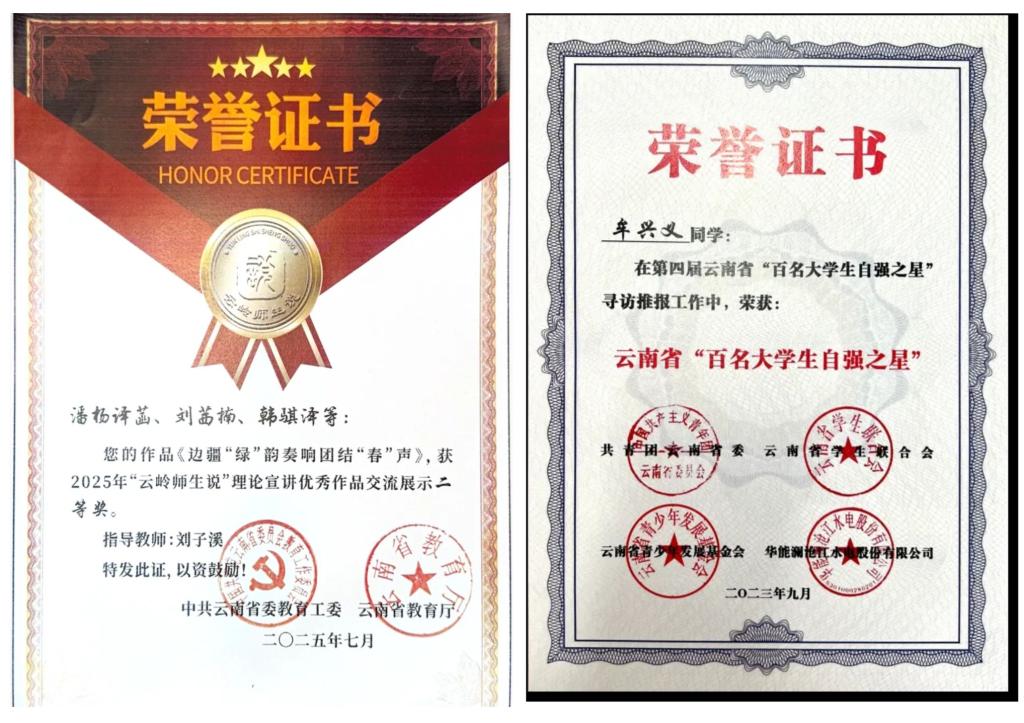 夯实教学根基,思政“金课”建设稳步提升。严格对标教育部要求,完善思政课“金课”建设标准。开足开好“习近平新时代中国特色社会主义思想概论”等核心课程,将铸牢中华民族共同体意识教育全面融入思政课教学。创新整合网络优质资源,推进思政课内涵式发展。着力建强师资队伍,持续选派教师参加国家级、省级培训,邀请清华大学、中国社科院等机构专家参与指导。常态化开展集体备课与教学评估,构建“备课-教学-实践-反思-提升”的闭环体系,促进教学能力持续提升。坚持守正创新,积极探索教学模式革新。组建“形势与政策”课程“一课多师”大团队,邀请文化名家、优秀校友、大国工匠、模范人物等参与,使课内和课外相互支撑、理论和实践相互印证;“四史”课程创新“思政课+艺术作品”的“双师联讲”,以艺术深化理论感悟。完善“以赛促教”机制,打造“一站式”磨课流程,组建名师指导专家库。积极构建“大思政课”格局,拓展育人场域。与西南联大博物馆等10余家单位签约建立实践基地,实现实践育人全覆盖。思政课改革示范效应显著。获省级教学成果奖一等奖1项、校级奖4项;“原理”“德法”课建成校级线上线下混合式、社会实践一流课程,4个教学案例获评省级优秀教案,多门课程启动知识图谱建设,以数字化提升教学互动与实效。2个实践基地入选教育部“大思政课”实践基地,2个项目入选高校思想政治工作质量提升综合改革与精品建设项目。教师获全国高校思政课教学展示一等奖1项、二等奖1项。积极探索大中小学思政课一体化理论与实践的创新发展,获批教育部“大中小学思政课一体化共同体建设”云南牵头单位。