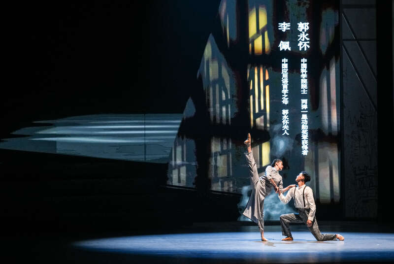 与歌声绕梁同步的舞蹈表演,最令人难忘的是每一段群舞结束造型定格时,上方都分别耸立着高举的拳头、马灯、课本,象征坚强的意志、光明和希望以及知识的力量。整个剧目中古典舞、民间舞、芭蕾舞自然融汇,每组舞者的空间灵巧切换,与剧情需要十分吻合。