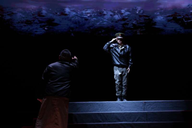 “你是中国人吗?是!你爱中国吗?爱!你愿意中国好吗?愿意!”剧目演出中,原本因剧情需要设计的舞台“爱国三问”,变为了台上演员和台下观众共同的回答。